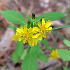 昨日投稿したコウヤボウキと、オケラに会いに行きましたが、⑤オケラはまだ蕾、可愛いく咲くヤクシソウに会えました✨💛🌿 ヤクシソウ…キク科オニタビラコ属の二年草、ウサギノチチなどの別名があり、葉などを傷つけると乳液がでる。