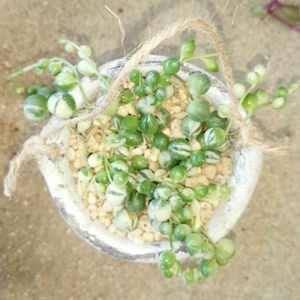 ミ○ツで発見した三日月ネックレス(≧∇≦*)💕 ハンギングタイプのセメントポットは無かったのでキューブタイプのセメントポットで植え付けました🌿✨ 枝挿しした苗のようで、チョロ根なのが心配です😓💦
