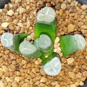 天気が良いので前から考えていたハオルチアの植え替えをしました☀ …が、一鉢名前が分らずモヤっとしてます💦 商品名が『サラダ葉』でした。 ウンブラティコラだと思うのですが、合っていますか? どなたかご存じの方、教えて下さい。 宜しくお願いしますm(_ _)m →無事に解決しました。 教えて下さった方有難うございました😆💕 モヤモヤがスッキリ☀