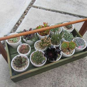 多肉鉢移動箱(岡持ち)です。 今回は2色に塗装しました。(^^♪