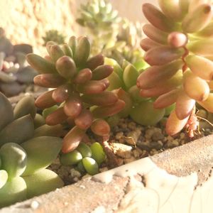 こんばんは🌙 放置の暴れ多肉です✨ 虹の玉ってコだと思うんですがまたの名をオーロラって言うんですかね? 適当にタグ付けてしまいましたが(笑) 紅葉して赤くなってお花みたいです✨ 前は寄せ植えだったかもですが今はスッカスカです🎶