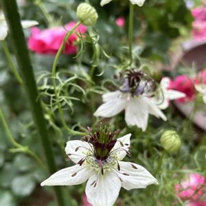 ニゲラ アフリカンブライドさん 種から育てて見ました~見た目の割に霜に強いんですね✍🏻💭 個性的な種も魅力的です🤍🖤