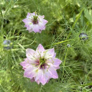 ニゲラ アフリカンブライド 2025 初夏の思い出 一株買ってきて植えたら、ポットの中に他の色の種も入っていたようで2枚目のような綺麗なブルーのニゲラも咲きました。 なんならアフリカンブライドより、そっちのブルーの方がよく育ちました笑 こぼれ種が出ているので来年がとても楽しみです。 (たぶんきっとブルーが咲くんだろうな…)