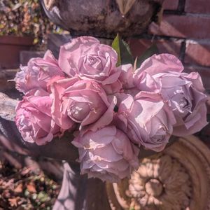 今朝はどんよりした曇りでしたが晴れて来ました☀ 明日は真冬並みの寒さだそうですね😨 買ったまま放置していたビオラ達を寄せ植えしました☺️ 暖かいうちにやらないとですね😅 ①オールドポート🌹いい色でクンクンしたら少し弱いけれど香りました〜♥ ②マシェリ🌹久しぶりに可愛く咲いてくれました♥ ③スプリットオブフリーダム🌹まだ蕾あるけれど咲けるかな⁉️ ④ラベンダーピノキオ🌹株元にチンマリ1輪😅 ⑤レヴリ🌹日陰で色濃く咲いてました♥