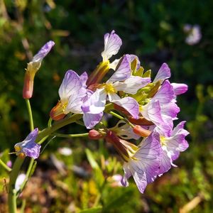 【ハマダイコン・浜大根】🌊𓆡①🌊 おはようございます✯✺🧜🏻✺✯良き一日を 春の海浜に薄紫色のお花をつけ、花後はさやをつけ、種は成熟するとコルク質のもので囲まれます。そして海水に浮かび運ばれていきます。畑で出来る大根とほぼ同じ形をしていて、根は大根のように大きくならず、長く伸び枝根やひげ根が多く生えます。かたくて辛味は強く筋っぽいですが、美味しく食べれる方法もあるそう❥❥❥🐈5月末pic!
