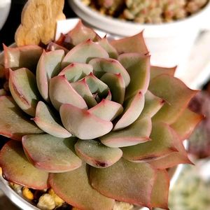 エケベリア…エゲリア💓 週末ワンコインセールでまた1つ😅 小さく見えて結構どっしり🥰 この子、サーモンピンクに紅葉するらしい(♡°▽°)もう目が♥️