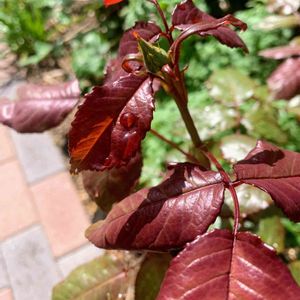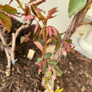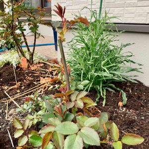 この季節のバラの葉の色はキラキラと輝いて美しいですね🌱 今年はお花が見られるかな、と期待している切り花品種を挿し木したバラの苗です。 なかなか大きくならずにいましたが、今年は葉っぱも大きく出てきています。 しかし、出開きばかりなのです。 付け根から取ってしまうにもまだ新芽が少ないのでなかなか勇気が出ません💦でも取らないと伸びませんよね〜🤔💦