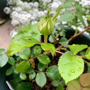 去年挿木したバラが蕾をつけています♪🌹 株を充実させる為に蕾はカットした方が良いと思いますが、名札が行方不明になり品種が不明💦確認する為にお花を咲かせます😅😅管理はきちんとやらないとダメですね。💦