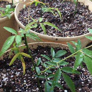 【挿木バラ3兄弟】 うちには挿木バラが3苗あります。 まだまだヒョロヒョロで頼りない感じです。 それでもそれぞれ自分のペースでシュートを伸ばして成長しています。 暖かいうちにしっかり大きくなって欲しいものです。