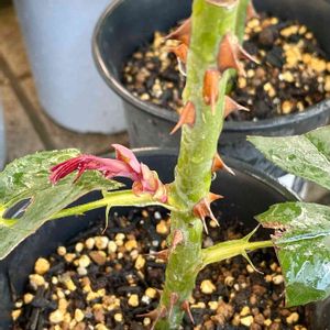 6月に挿木した薔薇🌹 1番太い茎の子。 この子だけ新芽が出てきていなかったけどようやく出てきました🤩 長かった😮💨