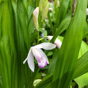 薄いピンク色の紫蘭です。 花壇の片隅で、この時期ひっそりと咲きます💕