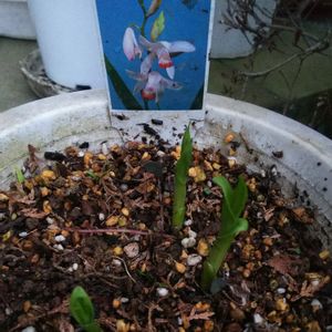 去年買った口紅紫蘭の芽が出てました🎵😍🎵