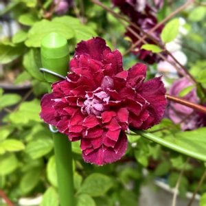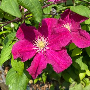 クレマチス バーバラハリントン。 うどん粉にやられながらも多くの花芽をつけております。 今日は日差しが眩しいです。