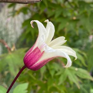クレマチス プリンセスケイト。 正面から見るより、横から見るのが良いです。 裏のピンク色がオシャレです。