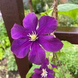 クレマチス サムシングブルー。 毎年葉に病気のようなものがつくのですが、今年は初期に見つけ次第取り除いていたら、ちゃんと咲いてくれました。今のところ病気も無し。 いつもは紫色なのに、今回はブルー感出てるなぁ。 やっと晴れましたが、連日の天候不順で庭の花がボロボロ…特にバラですね。 明日、切り戻して今後に期待します。
