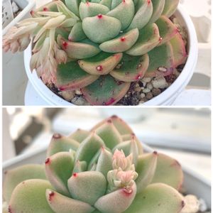 花芽が上がってきているので形がちょっと変だけど、エッジの薄ピンク色がたまらない(◍•ᴗ•◍)❤ アガボイデスの葉挿しは取りにくいけど、先日ネットで取り方をやってたので試してみたいな😁