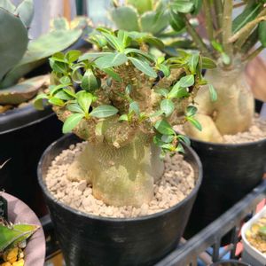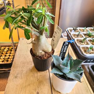 アガベの植え替えをしていたら菊鉢のストックが速攻でなくなったので、今日もホムセンに行きました☺️ 恒例の多肉コーナーチェックをしたらアデニウムが大量に入荷していたのでじっくり選んで枝振りのいいこの株をお迎えしました。 これで798円でしたけどネットじゃ考えられない値段ですね😅 さらにハシゴして別のホムセンでパラサナトライアンファントが入荷していたので思わずカゴに💧 もっているけどまだかなり小さいのでつい😄 今日もまずまずでした。本来の目的ではないけども😂