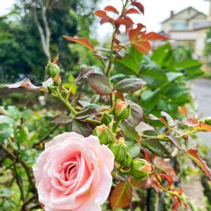マリーヘンリエッテ . 雨に降らないうちに開花🌹 . 淡いピンクがとても可愛い💕