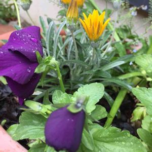 雨です ☔️ でも、すこし明るくなってきたかも 玄関横の大きな鉢 ワサワサの忘れな草を抜いたあとに 黄色のガザニアに交代 冬からの紫のパンジーさんと合いました 涼しいから?つぼみがまだ上がってきてます。 抜かなくて よかった (^_^*) がんば♡