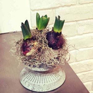 衝動買いで、芽だし球根のヒアシンス。 開花が楽しみ💕