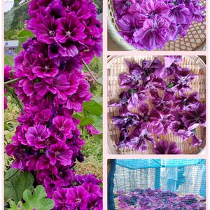 今年のマロウは花たくさんつけました。朝に花を摘んで、よく洗い、すぐザルに乗せて乾燥させてます。