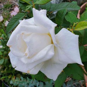 夏の白薔薇。 お疲れ様です。 真夏日の朝、殺風景な玄関先にキッパリと きれいなかたちで咲いていました。 今日はかなりの暑さで、私自身参って帰宅しました。 明日もう1にち、本日を更新するようです。 皆さまどうぞ残暑にもお気をつけください! 💦💦💦🎐