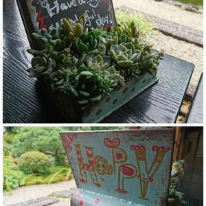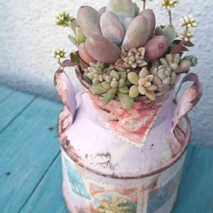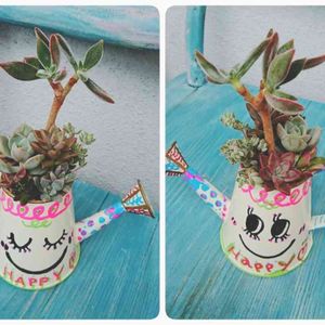 2018/06/21☀️ お昼過ぎに、急きょ姉に会うことになり、お家にあるダイソー油性ペンでダイソーのジョウロ缶に落書きして、お家にある多肉を引っこ抜いて寄せ植えして、プレゼントしたのが。。。これ✨☺️💦可愛いと喜んでくれたので私も嬉しー♪