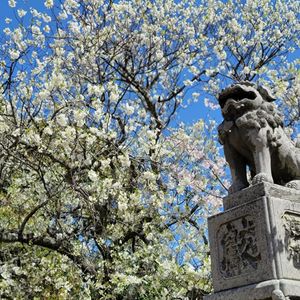 今日はもう1枚🤳 萩城跡指月公園のミドリヨシノ🌸 狛犬の隣にソメイヨシノも写っているので色の違いがわかるかも⁉️