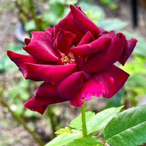 おはようございます☀️ 今朝のお花は 庭のバラ🌹 黒真珠🖤♥️ 久しぶりに咲きました😍 3輪も咲いて嬉しいです✨ 春は咲きませんでした😅 地植えで ちょっと窮屈に 傾いてしまったので ついつい力を加えたりしてストレスいっぱいの子でした😂 来月には鉢植えに変えようと思います😊 やっぱり綺麗〜💓