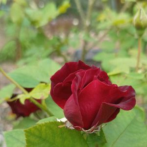 薔薇“黒真珠”が我が家に来てから初の開花\(^o^)/ 花弁の質感が本当にベルベット調で格好良い(人*´∀`)。*゚+