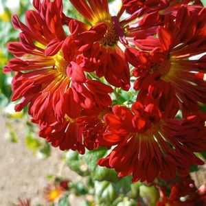 🍀おはようございます🍀 真っ赤な菊のお花が 日差しを浴びて〜鮮やか❤️ ②③地植えの薔薇 黒真珠🌹 開きかけ位が好き( ╹▽╹ ) ④⑤昨日のたぬきさんとのpicは 挿し芽株でしたが 今日のはその親株の アルテルナンテラ リトルロマンス🌿 おひさまで真っ赤に〜❤️