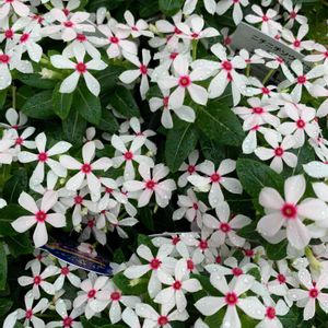 ニチニチソウ属 *フェアリースター* ニチニチソウより花びらの大きさが4分の1ぐらいの大きさらしいです。 5つの花びらが星☆のようですよね(*˙꒳˙*)‧⁺✧︎* 真ん中の赤ポチがある事で華やかに見えて綺麗❣️