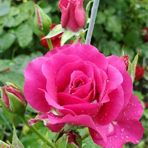 おはよぅございます🎵 ☂️だらけです😆 このバラ 去年、調子悪くて地植えして 今年、やっと 元気に蕾をいっぱい 付けてくれました🎵 でも、まだ、身長30㌢位なチビです😁