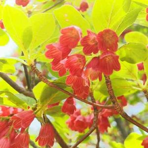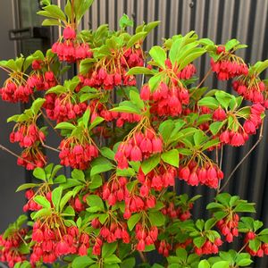 ベニドウダンツツジの花は、4月ごろ若葉が開くとともに、小枝の先に垂れ下がった「つぼ形で紅色の小さな花」をつけます(直径7~8mm)。🌺素敵な全体の雰囲気をお楽しみください。🌺🌿🌸