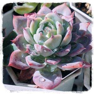 🏷ド真ん中の日 ⬅️パンダフェイス グリーンサンタ産 🌵じゃなくて、これでもエケベリア😁 青い渚っぽい感じだけどちょっと違う モケモケとこの色合いが好み😍 ➡️A-pink えぇピンクしております💓 ⬇️パラディン 黄色っぽい色にこの三角形爪ピンフォルム 良き良き♬( ・◡・ )