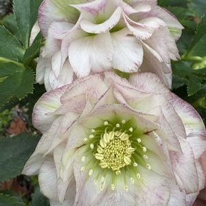 クリスマスローズダブル 中庭も咲き始めました 中庭はお昼からで無いと陽が当たらないからキッチン裏の朝日が当たるクリスマスローズより遅れます