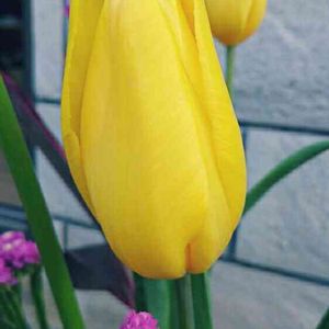 今日は、黄色いチューリップに元気をもらいます❤ スターチスとユキヤナギを添えて(^з^)-☆