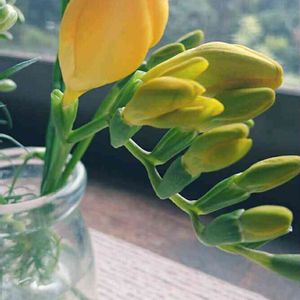 今や開かんばかりのプックリしたフリージアが、かわいい❗