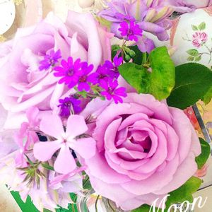 💜💜💜💜💜 雨が降る前に..... 開いてきたブルームーンを カットしました。 部屋の中はバラの香り ムンムン💕 💜💜💜💜💜