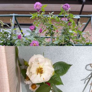 こんにちは😃 不思議な事が起こりました(・・?) 先日、お手入れの時にブルーフォーユーの蕾をうっかり折ってしまったので、花瓶に挿しておいたら、何故か写真の様に白く咲いたのです😅何故だろう…初めての事です💦 今咲いているのは全て💜 我が家には白いバラは無いので、ある意味新鮮です(๑˃̵ᴗ˂̵)