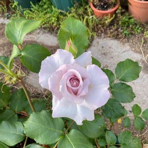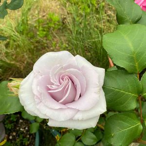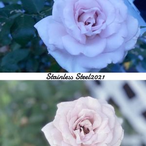 ステンレス スチールが開いてきました❁⃘*.゚ ちゃんとしたつるバラでないので誘引してないです♪ 色はグレー含み明るい藤色です! なかなか伝えれないっ! もう苗に葉っぱない状態で大寒波(。•́ωก̀。) 咲くのかなあ〜とずっと待っていたら 少しずつ開いてきました〜 この梅雨時期に( ̄◇ ̄;) もっと花姿綺麗なんだけど 雨やら風やらあるのでこの辺で載せときます𓂃◌𓈒𓐍