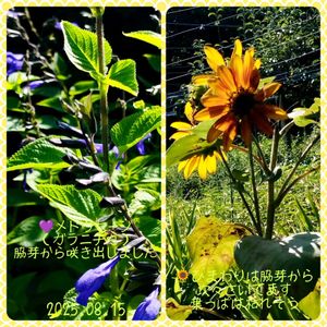 おはようございます😄 零れ種で何故か植えてない所から 咲いてきました😆 「サフィニア」 昨年枯れたのに新しい苗🌱 凄い〜🎶 朝顔「ミルキーウェイ」野生化してるよ 蔓が太くて強盛です 昼顔は猛暑で好き放題に咲いてます 色んな松葉牡丹 今年は玉ねぎ🧅2種 種から栽培してみます 良い苗ができますように😌