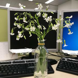 庭から切って、会社の部屋へ持って、机の上に置いています