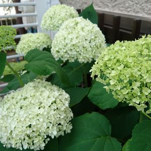 アナベルの花がたくさん咲いています。手まりのようです。小さな花が集まっているのをじっと観察。カワイイ!