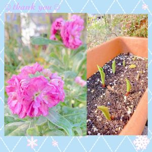 ストック チューリップの芽 ストックが咲き出しています。 チューリップ🌷も芽が出てきました😃 まだまだ寒いですが、お花を見てるとちょっと暖かい気持ちになりますね☀️