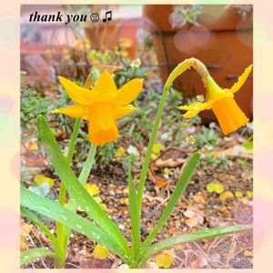 スイセン 小さなスイセンが二つだけ咲いてました。 雨風に打たれながらも咲いてます🙂 母が植えていたもので、毎年咲きます💛 スイセンは、よく咲いてくれてありがたいですね😃🎶