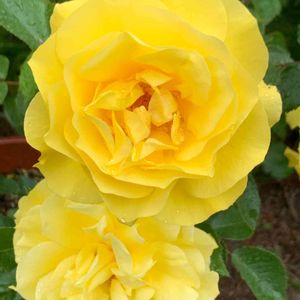 こんにちは♫ 本日の1枚は、庭の薔薇です😆🤚 黄色い大輪の花が鮮やかですねー♫ 我が家では数少ない薔薇の一鉢😊👌 譲り受けた子なので、薔薇以外、名前は分かりません😱笑笑