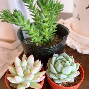 グリーンペット、樹氷、静夜 まだまだ多肉初心者で、育てやすいのを選びました。 購入しただけで満足してたりします😅