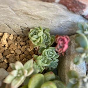 大量質問失礼します。 寄せ植えに入っていた多肉植物ですが、 どなたか名前わかる方いましたら、 教えてください🙇♂️ 写真中央に3つある 多肉植物です。