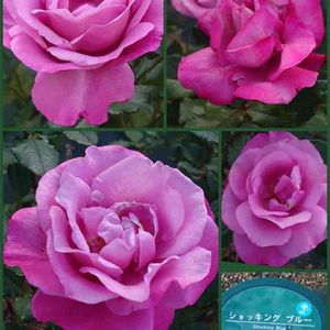 🌹ショッキングブルー(Shocking Blue) 作出/1974年 ドイツ コルデス社(Reimer Kordes氏) 系統/F フロリバンダ 花形/半剣弁高芯咲き 香り/ダマスク : 強香 四季咲き 📷2018年5月1日 日比谷花壇大船フラワーセンターにて